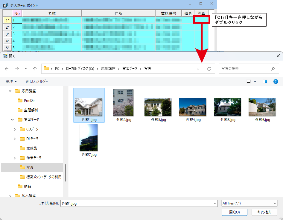 この実習データでは、管理番号「NO」にあわせて、写真ファイル名を付けています。