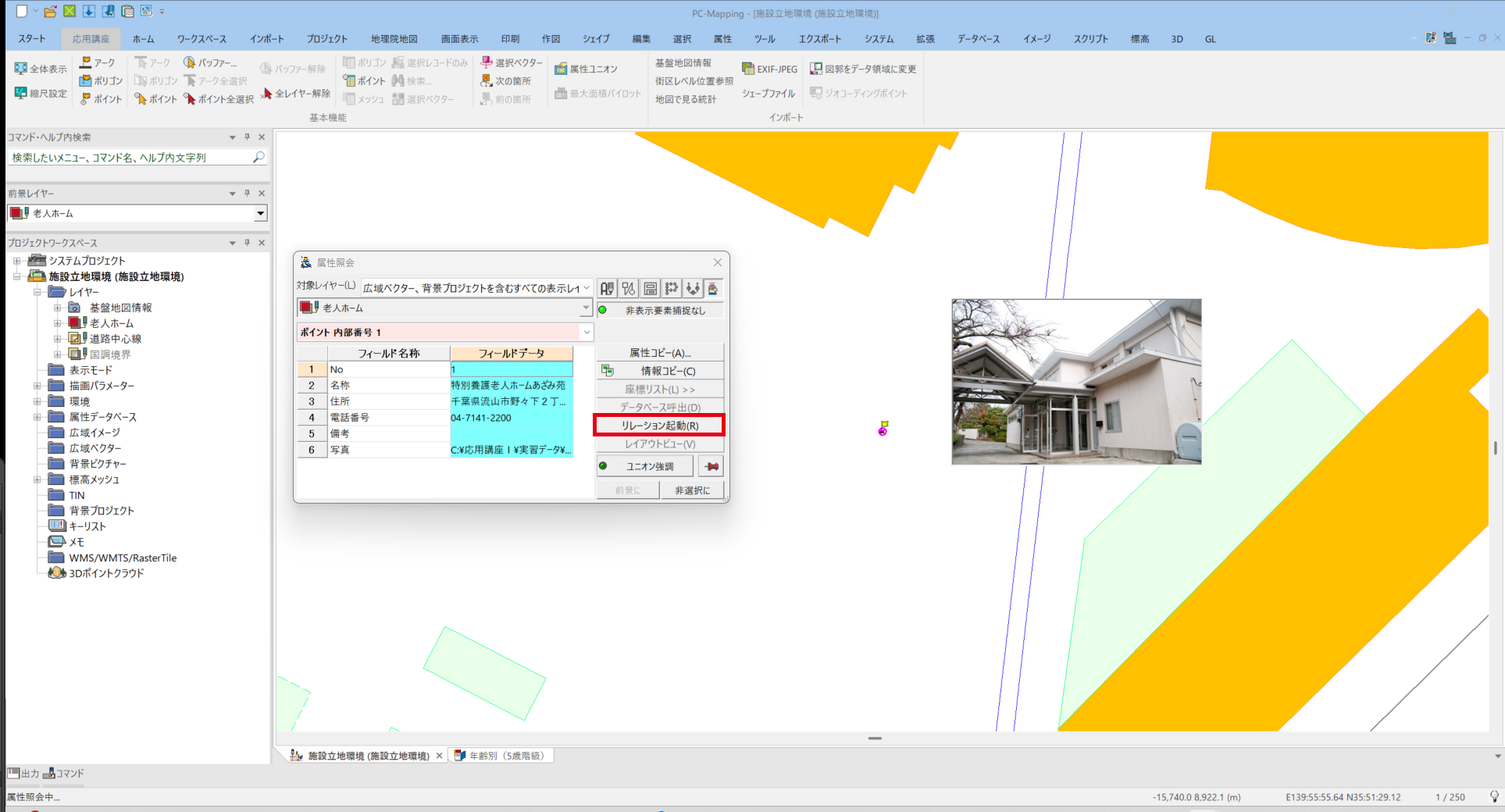 ⑥再度属性照会を実行し、【リレーション】をクリックする
