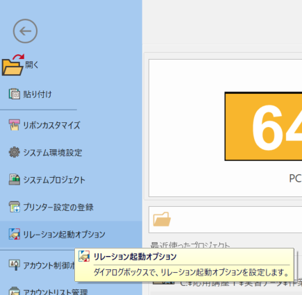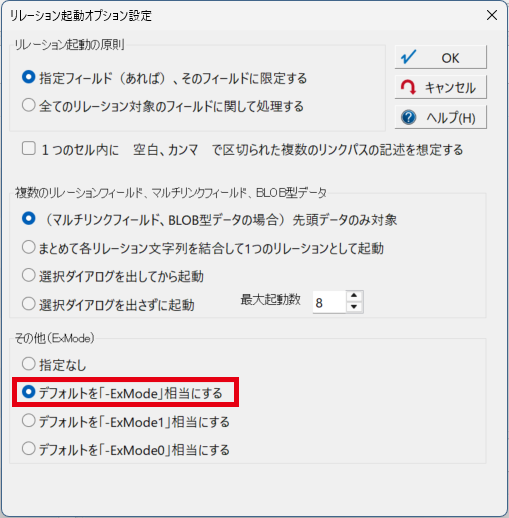 ⑤[リレーション起動オプション設定]ダイアログが表示