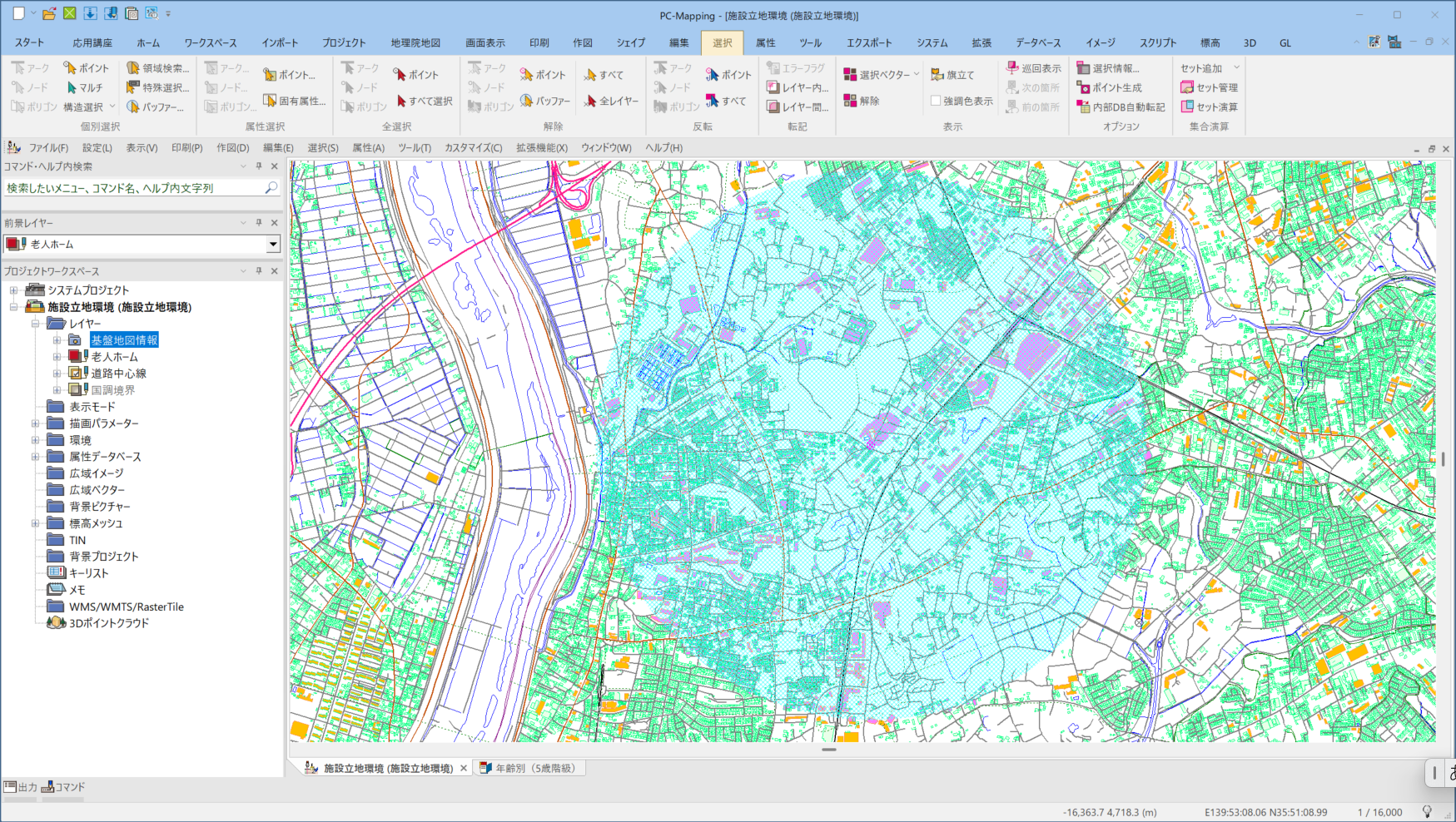 表示縮尺設定で、1/16000として、バッファーが入るよ