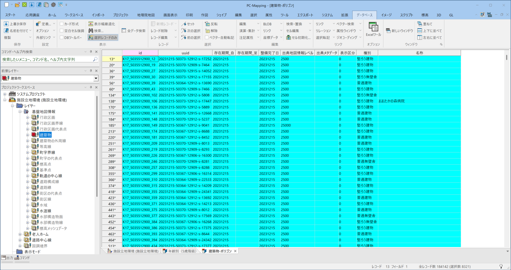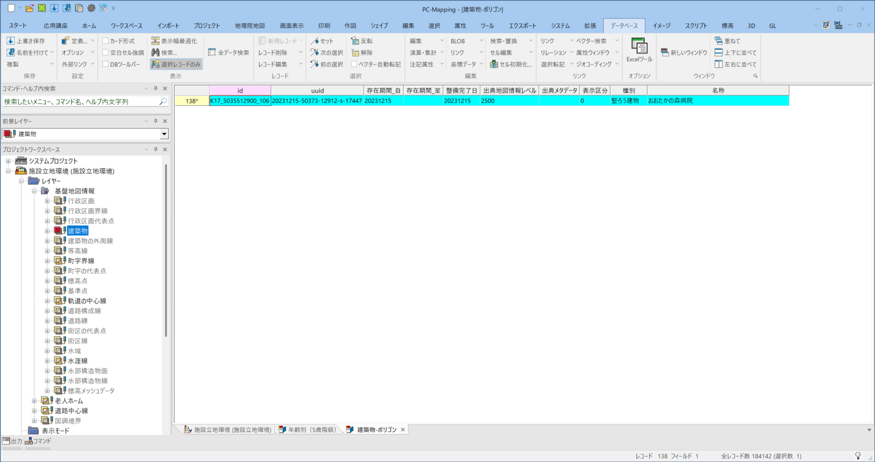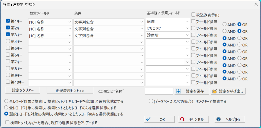 ②[データベース]‐[表示]‐[検索]を実行し、病院関連