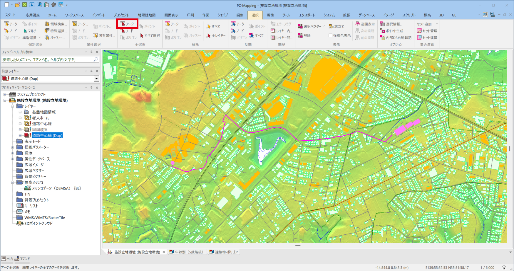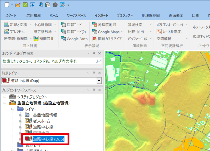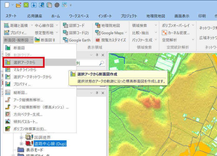[断面図]ウィンドウメニューで、表示設定を変更できます。