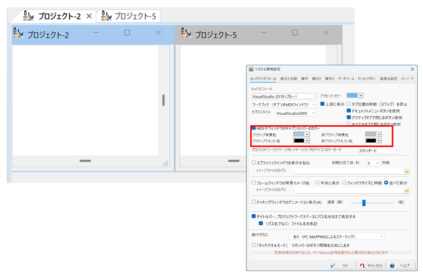 - MDI子ウィンドウのキャプションバーのカラー設定を追加