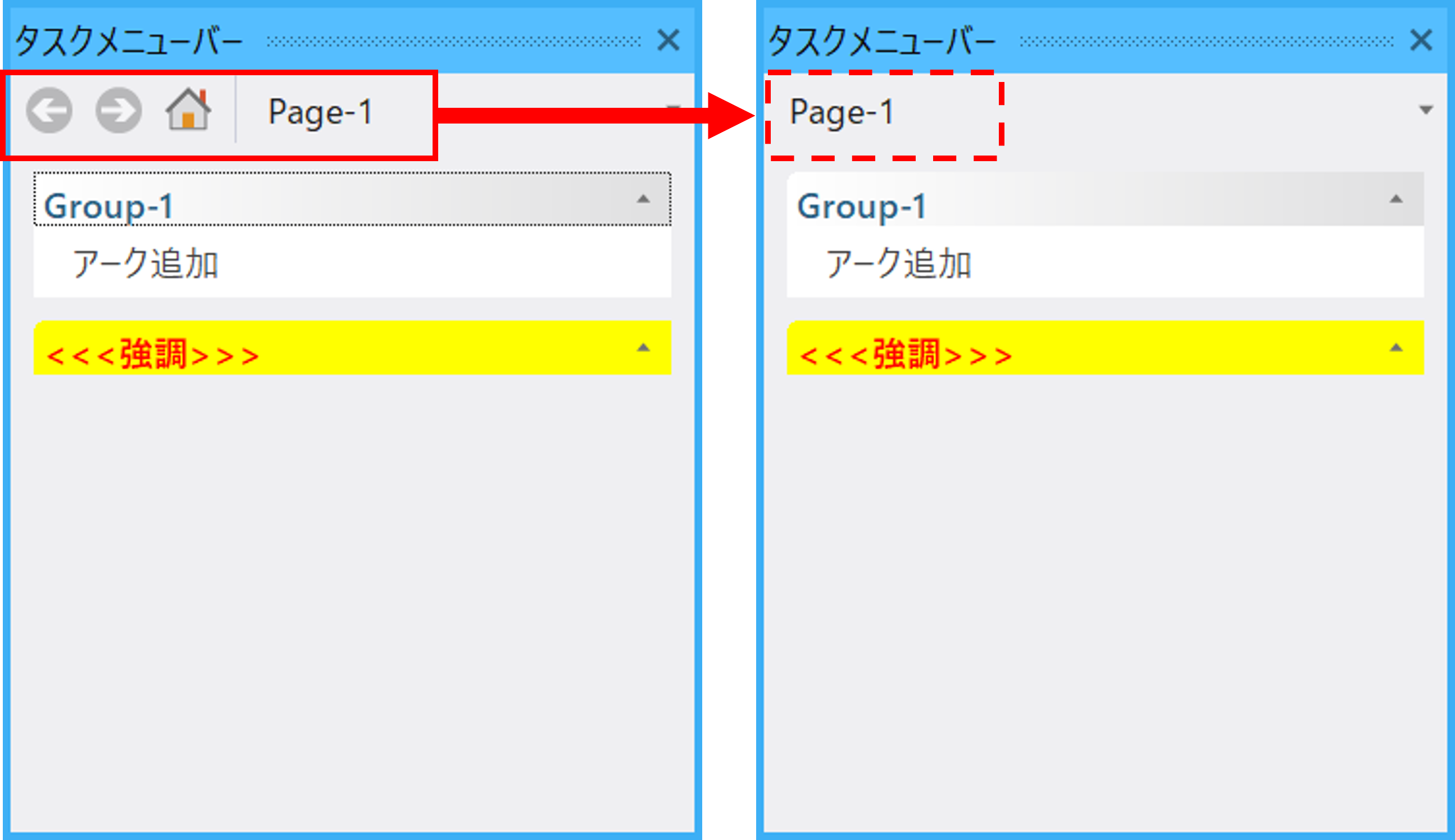 以下をiniに追加することで、タスクバーのナビゲーションでの、「前へ」「次へ」「ホーム」のボタンを非表示に設定できるようにしました。