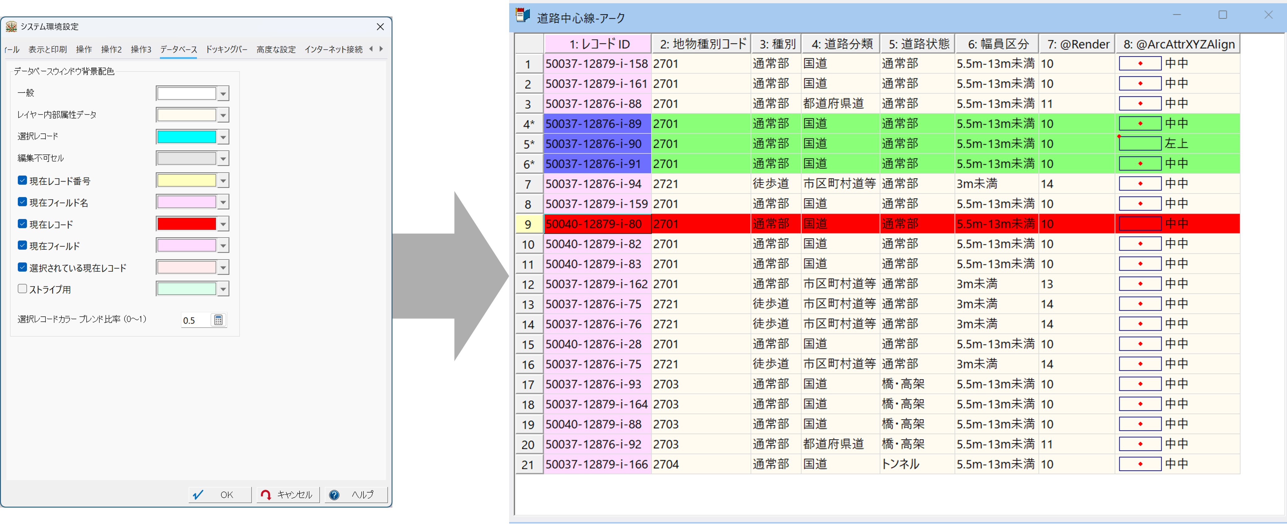[レイヤーエキスパート]-[アーク]パネル「アーク内部属性フィールド」に、